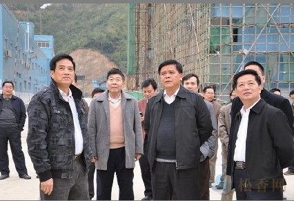 圖一 竺坤松(右二)到梧松視察,右為梧州市萬(wàn)秀區(qū)委書(shū)記謝祥禧,左為梧松總經(jīng)理車(chē)乾池