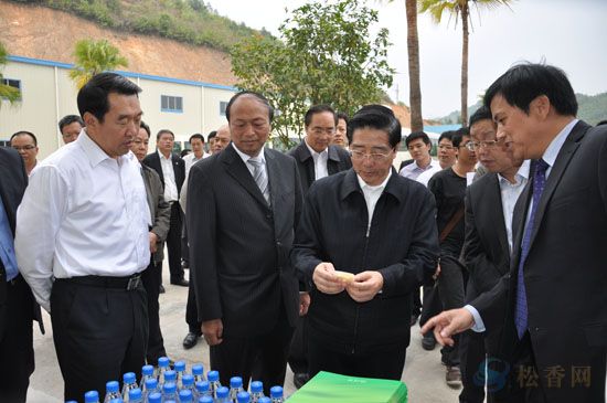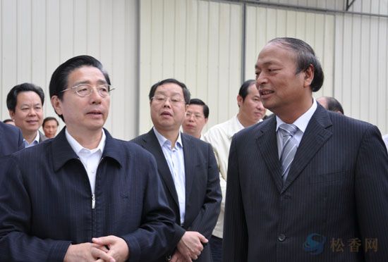 中共廣西區(qū)黨委書記郭聲琨(中)在公司視察,左為梧州市委書記劉志勇;右二區(qū)發(fā)改委主任黃方方;左二董事長孔仕才;右總經(jīng)理車乾池
