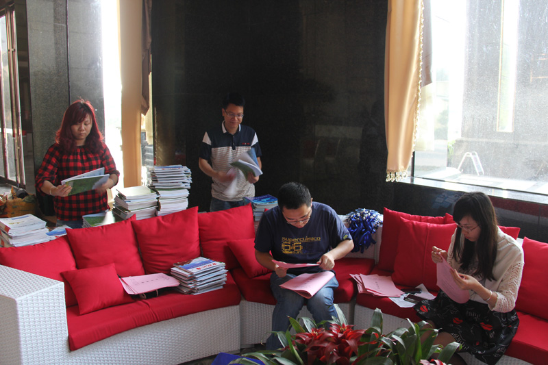(會務工作人員小黃在認真折疊會議指南)