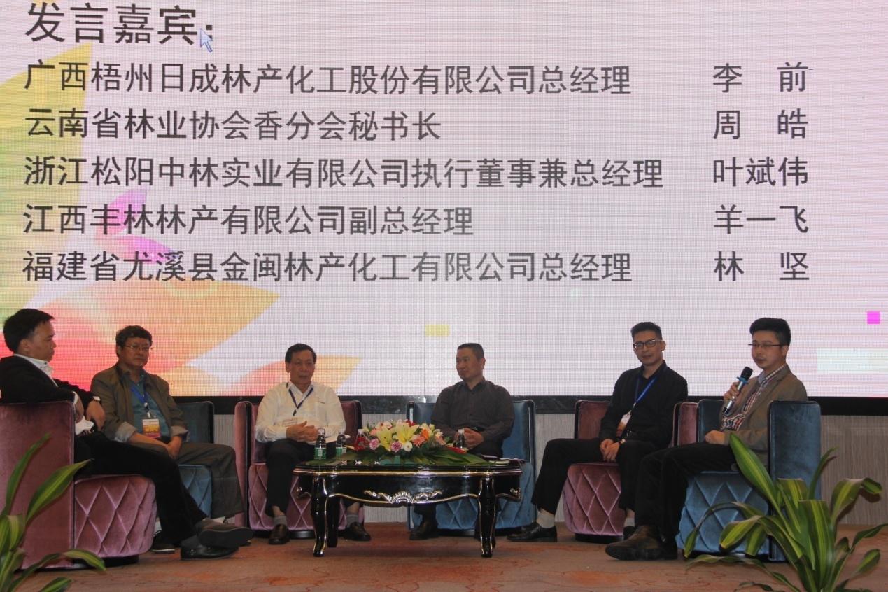 上午會(huì)議的高潮部分在分論壇一《行業(yè)轉(zhuǎn)型新模式——林地流轉(zhuǎn)探討》環(huán)節(jié),由廣東科茂林產(chǎn)化工有限公司董事長(zhǎng)曾廣建主持;四位發(fā)言嘉賓項(xiàng)應(yīng)夢(mèng)、周皓、徐立新、何發(fā)富分別就中國(guó)當(dāng)前有關(guān)林地流轉(zhuǎn)政策、林地流轉(zhuǎn)政策與松香行業(yè)的關(guān)系、林地流轉(zhuǎn)政策給松香行業(yè)發(fā)展帶來(lái)的機(jī)遇與挑戰(zhàn)、松香行業(yè)如何投資參與林地流轉(zhuǎn)經(jīng)營(yíng)等話題展開了深刻的探討。在松香需求日益萎縮的新形勢(shì)下,四位嘉賓精辟的見(jiàn)解及行之有效的經(jīng)驗(yàn)介紹讓參會(huì)代表收獲頗豐而贏得了參會(huì)代表陣陣熱烈的掌聲。
