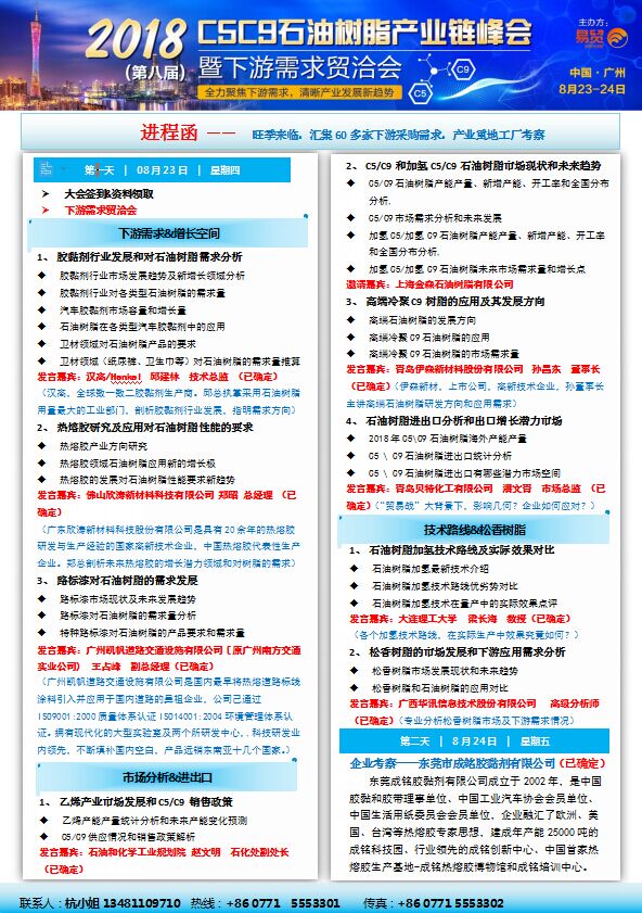 2018(第八屆)C5C9石油樹脂產(chǎn)業(yè)鏈峰會暨下游需求貿(mào)洽會(最新進程)