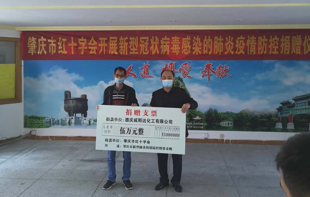 肇慶市德慶上品精細化工有限公司及總經理周啟斌本人 現(xiàn)金捐贈38萬元,消毒液和口罩超16萬元,