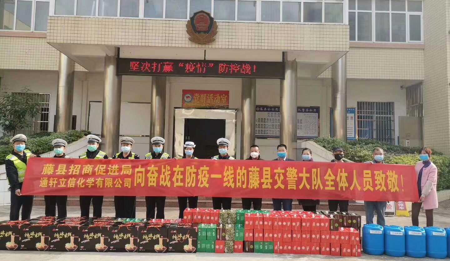 廣西藤縣通軒立信化學有限公司 向奮戰(zhàn)在防疫一線的藤縣交警大隊捐贈防疫物資