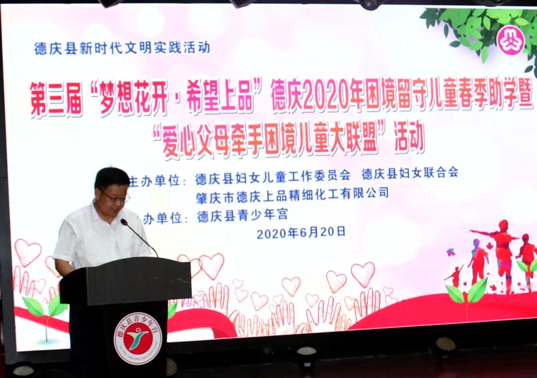 在20日當(dāng)日的活動中,周啟斌先生作重要講話。他說:今年是中央政府全面打贏扶貧脫貧攻堅之年,是全面建成小康社會目標(biāo)實現(xiàn)之年。讓中國幾千萬人全部脫貧,責(zé)任之大、任務(wù)之重前所未有。這就需要我們所有人都能夠伸出援手扶一把,特別是幫助那些貧困家庭的孩子們,資助他們繼續(xù)求學(xué)讀書,讓讀書求知之路一個都不能少!但是,新年伊始,一場突如其來的新型冠狀肺炎疫情在全國直至全球迅速蔓延,讓我們每個人身臨其中,經(jīng)歷了一場難以忘懷的“戰(zhàn)疫”,給每個人、每個家庭的生活、工作都帶來了不同程度的影響,企業(yè)停工停產(chǎn),學(xué)校停課,尤其給臨近中高考的學(xué)生們帶來了挑戰(zhàn)?,F(xiàn)在國內(nèi)的疫情在政府的有力的管控下取得了突破性的進(jìn)展,各年級的學(xué)生也相繼走回了校園,我們欣喜地看到孩子們好像突然之間長大了很多,疫情雖然阻擋了他們學(xué)習(xí)知識的進(jìn)度,但是沒有阻擋他們成長的步伐。所謂少年強則國家強,關(guān)愛孩子,就是關(guān)心祖國的未來。孩子是祖國的花朵,兒童是民族的未來,讓他們健康、快樂地成長,是我們義不容辭的責(zé)任。為了把美好的牽掛化作實實在在的行動,我公司和我本人協(xié)同社會的一些熱心人士,共同伸出援手,在德慶縣婦聯(lián)的大力支持下,共建“夢想花開·希望上品”關(guān)愛德慶困境兒童公益項目,以此舉拋磚引玉、希望能夠吸引更多的社會各界熱心人士奉獻(xiàn)愛心,將該項公益活動不斷發(fā)展壯大,讓更多的困境兒童受益!贈人玫瑰,手留余香!希望我們共同伸出友愛的雙手,去愛護(hù)、去支持身陷困境中的孩子,讓他們也同樣放飛夢想,收獲希望!