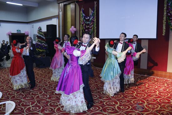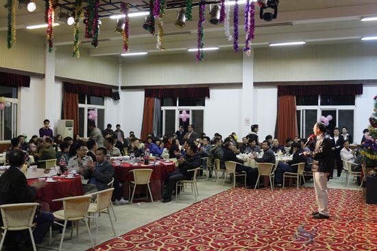 結(jié)束了下午緊張的游戲和比賽項目后,聯(lián)歡晚宴在晚上19:00點(diǎn)準(zhǔn)時開始。首先廣東松香分會會長趙敏貴先生致辭,他提到本次作為廣東省松香行業(yè)第一屆迎新聯(lián)誼活動,第一炮能成功打響是因為有各松香企業(yè)的大力支持和積極參與。本次活動重在聯(lián)誼,不談生意、不談恩仇,旨在讓參與在“自娛、自樂、自由、自在”中舒緩一年來的工作壓力。接著,在大家紛紛舉杯、享用美味晚餐的同時,還欣賞了各松香企業(yè)精心準(zhǔn)備的節(jié)目。第一個表演節(jié)目由廣州科茂公司準(zhǔn)備的《宮廷舞》隆重登場,一批俊男美女把全場的目光都吸