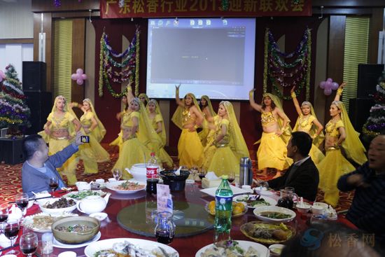 引住了;廣東農(nóng)墾帶來了精彩的武術(shù)表演,臺(tái)下觀眾意猶未盡齊聲高喊“再來一個(gè)”;廣東林產(chǎn)帶來串燒舞蹈《快樂的小天鵝+No body+江南Style》,黑天鵝(男)奔放可愛的舞姿引來了晚會(huì)的又一撥高潮;由肇慶市金龍松香制桶有限公司帶來的歌曲《執(zhí)著》特地修改了歌詞,將我們對(duì)松香行業(yè)的執(zhí)著用美妙的歌聲表達(dá)得淋漓盡致?!毒羰课琛?廣東威斯達(dá))、《大阪城的姑娘》(廣東農(nóng)墾)給觀眾帶來了各具風(fēng)格的感官享受,歌曲《紅紅的日子》、《歡天喜地》(金南化工)、《側(cè)面》、《一首歌一個(gè)故事》(廣東富侍德)將大家的思緒牽回又帶遠(yuǎn),沉浸在對(duì)過去的懷念和對(duì)未來的期望中。最后,廣州科茂的舞蹈《印度舞》以華麗的服裝、男扮女裝混入表演者的搞笑陣容和專業(yè)優(yōu)美的表演獲得了全場最熱烈的掌聲,把晚會(huì)推至最后的高潮。文藝節(jié)目陸續(xù)上演的同時(shí),晚會(huì)還穿插了豐富抽獎(jiǎng)活動(dòng),在晚會(huì)接近尾聲時(shí),廣州鴻孚物流的劉總為了助興還特別增加了現(xiàn)金特別獎(jiǎng)1名,21:00左右,聯(lián)歡晚宴在觥籌交錯(cuò)、歡聲笑語中圓滿落幕,接著進(jìn)入到更能自我發(fā)揮的卡拉OK環(huán)節(jié)。