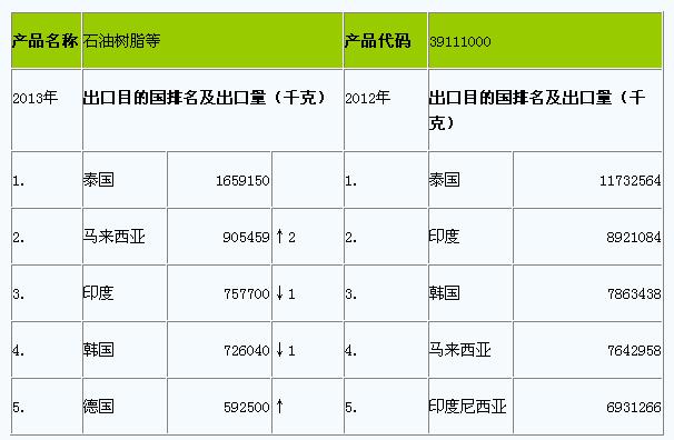 2013年1月石油樹脂出口產(chǎn)銷國(guó)分析