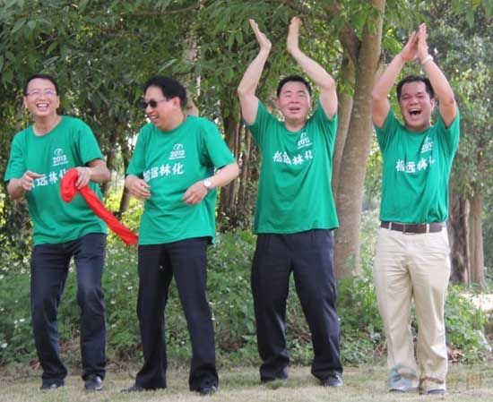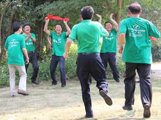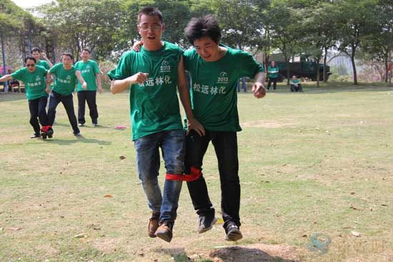 大家休息片刻后,接過主持人手中的紅繩,開始了最具有挑戰(zhàn)力的“綁腿接力賽”,依舊是紅、黃、綠三隊(duì)進(jìn)行比賽。主持人一聲令下,馬上向前沖到隊(duì)友面前,解開腳上的紅繩子傳遞給下一小組的隊(duì)友,在一片歡呼吶喊聲中,大家群情激昂,誰也不愿意拖后腿,本來是一個(gè)娛樂的游戲,變成了你追我趕的比賽,當(dāng)黃隊(duì)到達(dá)終點(diǎn)解開紅繩一路飛奔回到起點(diǎn)最終獲勝時(shí),大家一起鼓掌慶祝。在一陣激動人心的游戲后,大家開始坐上旅游車延著公園欣賞一路美景,并觀看了黑熊。憨態(tài)可掬的黑熊逗得大家笑聲不斷。