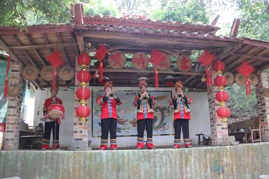 4月19日,南寧的天氣格外的好,在南寧參加2013松香產(chǎn)業(yè)高峰論壇的代表一行近五十人,一路歡聲笑語(yǔ)向壯民族的文化發(fā)祥地之一的廣西武鳴縣進(jìn)發(fā)。上午的目的地是伊嶺巖風(fēng)景區(qū),該景區(qū)依托伊嶺巖獨(dú)特的喀斯特溶洞及秀麗的山水風(fēng)光,同時(shí)將壯族的民族風(fēng)情融入到美麗的自然景觀當(dāng)中,代表們一邊欣賞著自然景觀,在民俗長(zhǎng)廊真實(shí)的感受了一把壯家傳統(tǒng)的迎客禮儀,從嗩吶迎客、跳竹杠舞、對(duì)唱山歌、喝迎客酒、品壯家特色小吃等等,領(lǐng)略到了絢麗多姿的壯族文化。