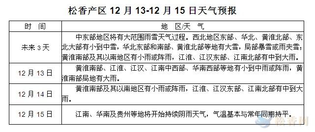 松香產(chǎn)區(qū)12月13日-15日天氣預報