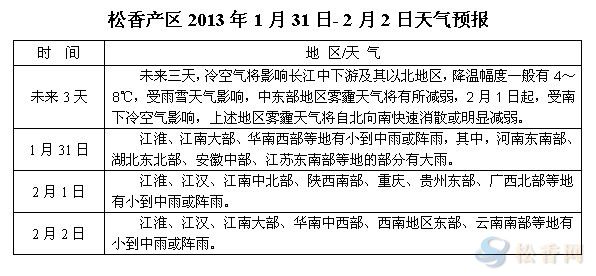 松香產區(qū)2013年1月31日- 2月2日天氣預報