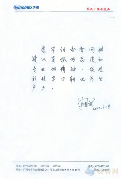 8、感謝您對華訊松香網(wǎng)的肯定與信任,擔起科研單位與企業(yè)之間信息溝通的責任我們義不容辭,而且這些工作我們已經(jīng)在積極地開展。最后,請您在華訊松香網(wǎng)十周年來臨之際,贈與我們一些祝福的話語。謝謝!