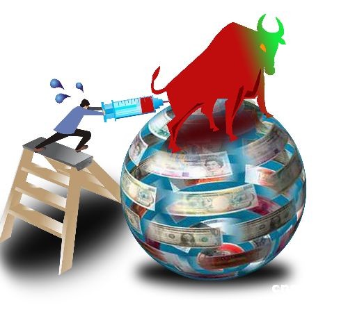 漫畫:全球各國聯(lián)合救市。 中新社發(fā) 呂建設(shè) 作