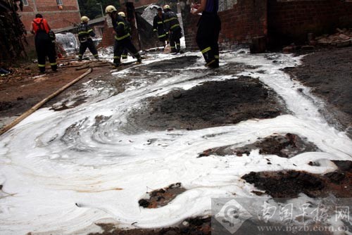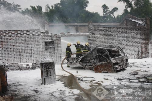 消防官兵用泡沫滅火。南國早報記者 唐輝吉攝