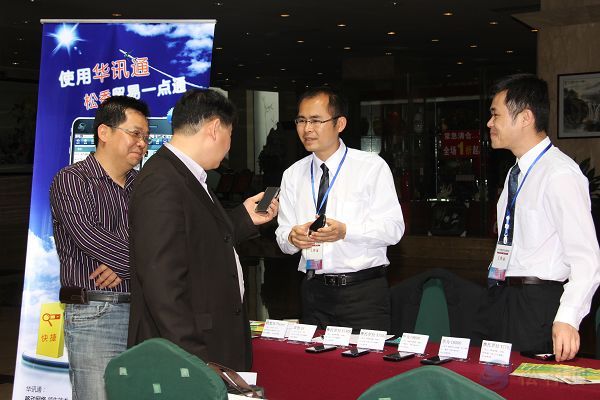 華訊松香網(wǎng)長(zhǎng)沙訊 長(zhǎng)沙會(huì)議報(bào)到工作在緊鑼密鼓的進(jìn)行著,而在簽到臺(tái)旁邊的“華訊通”展臺(tái)也沒(méi)閑著,它吸引了不少參會(huì)代表的駐足觀看。他們聽(tīng)工作人員仔細(xì)講解,并不時(shí)詢問(wèn)相關(guān)問(wèn)題。
