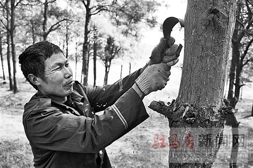 “不在規(guī)定直徑范圍內(nèi)采集松脂,會對松樹產(chǎn)生不利的影響。”竹溝水庫的一名工作人員對記者說,他看到有人來水庫邊采松脂,就上前制止,但這些人聲稱當(dāng)?shù)卣疾还?,他是多管閑事。