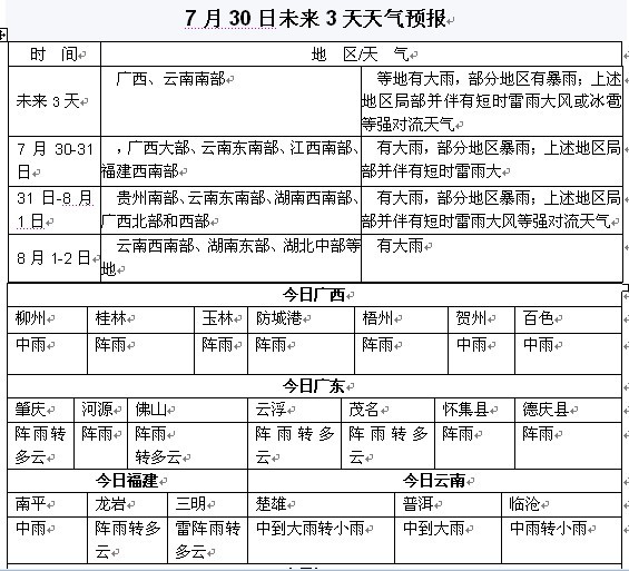 松香產(chǎn)區(qū)7月30日天氣預(yù)報(bào)