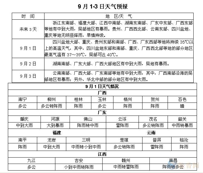 松香產(chǎn)區(qū)9月1-3日天氣預(yù)報