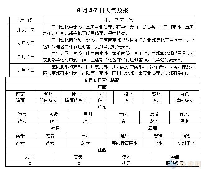 松香產(chǎn)區(qū)9月5-7日天氣預(yù)報(bào)