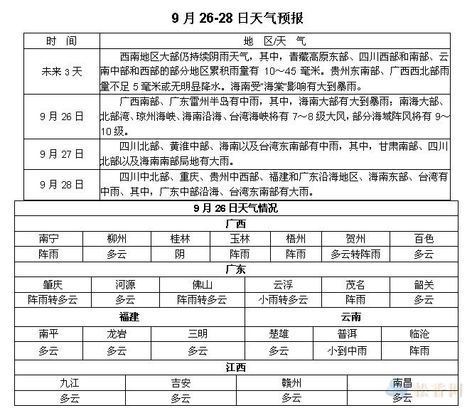 松香產(chǎn)區(qū)9月26-28日天氣預(yù)報