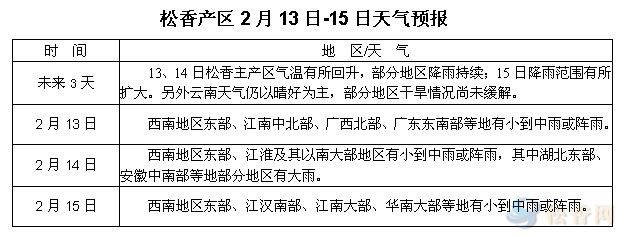 華訊松香網(wǎng)提醒:未來三天,大部分松香產(chǎn)區(qū)降雨天氣有所減弱,但天氣仍較寒冷,除云南外兩廣、江西及福建等產(chǎn)區(qū)基本無人上山采脂。云南部分地區(qū)干旱天氣持續(xù),從目前來看對松脂影響不大,若在未來的一段時間里干旱不能緩解,不排除對松脂產(chǎn)量有所影響。