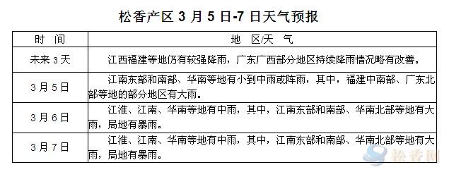 華訊松香網(wǎng)提醒:未來(lái)三天,兩廣及江西福建等地部分地區(qū)持續(xù)降雨情況稍有緩解,部分地區(qū)仍有較強(qiáng)降水,局部暴雨。隨著天氣的漸漸好轉(zhuǎn),部分地區(qū)上山采脂前期準(zhǔn)備工作將陸續(xù)開(kāi)展,上山工人應(yīng)注意長(zhǎng)時(shí)間降雨造成的山路濕滑,做好防雨防滑工作。