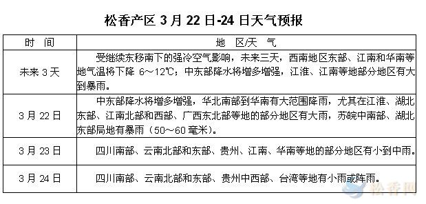 華訊松香網(wǎng)溫馨提示:未來三天,西南地區(qū)東部、江南和華南等地氣溫將下降,其中廣西、湖北東部部分地區(qū)有大雨,此次降雨將對(duì)近期松脂運(yùn)輸、上山等戶外活動(dòng)產(chǎn)生影響,雨勢(shì)較大的區(qū)域需警惕短時(shí)強(qiáng)降雨、雷暴等可能引發(fā)的安全問題。云南北部地區(qū)的小到中雨,有利于緩解部分地區(qū)旱情。