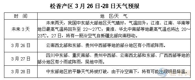 松香產(chǎn)區(qū)3月26日-28日天氣預(yù)報(bào)