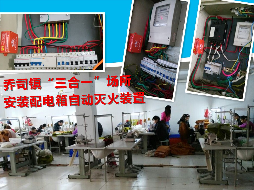 與以往“三合一”整治工作不同的是,此次工作的亮點是鎮(zhèn)政府為所有“三合一”場所的配電柜、配電箱安裝微型自動滅火裝置,該裝置由杭州華神院士工作站自主研發(fā),安裝在高運轉(zhuǎn)負(fù)荷、高火災(zāi)風(fēng)險的配電柜、配電箱內(nèi),可無人值守地監(jiān)測火情,一旦發(fā)現(xiàn)明火即可秒速啟動自動滅火裝置,噴發(fā)一種名為熱氣溶膠的環(huán)保型乳白色滅火氣體,只需十余秒就可完全撲滅明火,并啟動報警鈴音。該裝置的安裝,從高火災(zāi)隱患的電氣源頭部位杜絕了火患,為“三合一”場所內(nèi)的人員疏散和逃生贏得了寶貴的時間,有效提高了自防自救的能力。
