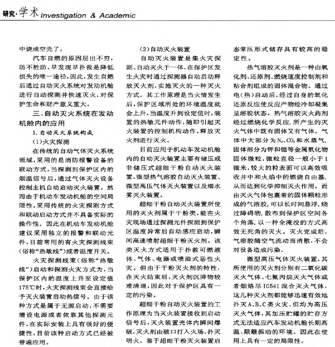 自動滅火系統(tǒng)在機動車發(fā)動機艙的應(yīng)用研究