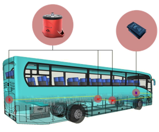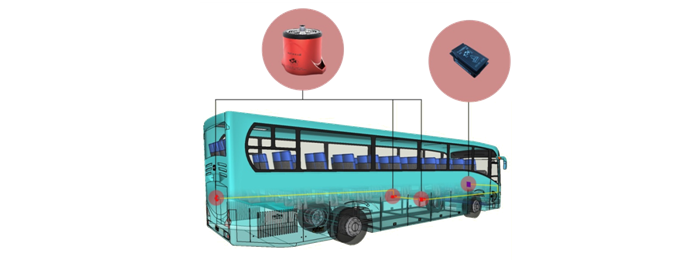 計(jì)案例:江西百路佳新能源6.5米長(zhǎng)客車,內(nèi)有電池艙5個(gè),故需設(shè)計(jì)的保護(hù)區(qū)為5個(gè)保護(hù)區(qū),每個(gè)保護(hù)區(qū)配置1臺(tái)自動(dòng)滅火裝置(型號(hào)QRR0.03GW/SHS-AR23ZF),5個(gè)保護(hù)區(qū)內(nèi)的5臺(tái)裝置通過總承線束和駕駛員操作盤上的模塊聯(lián)接。