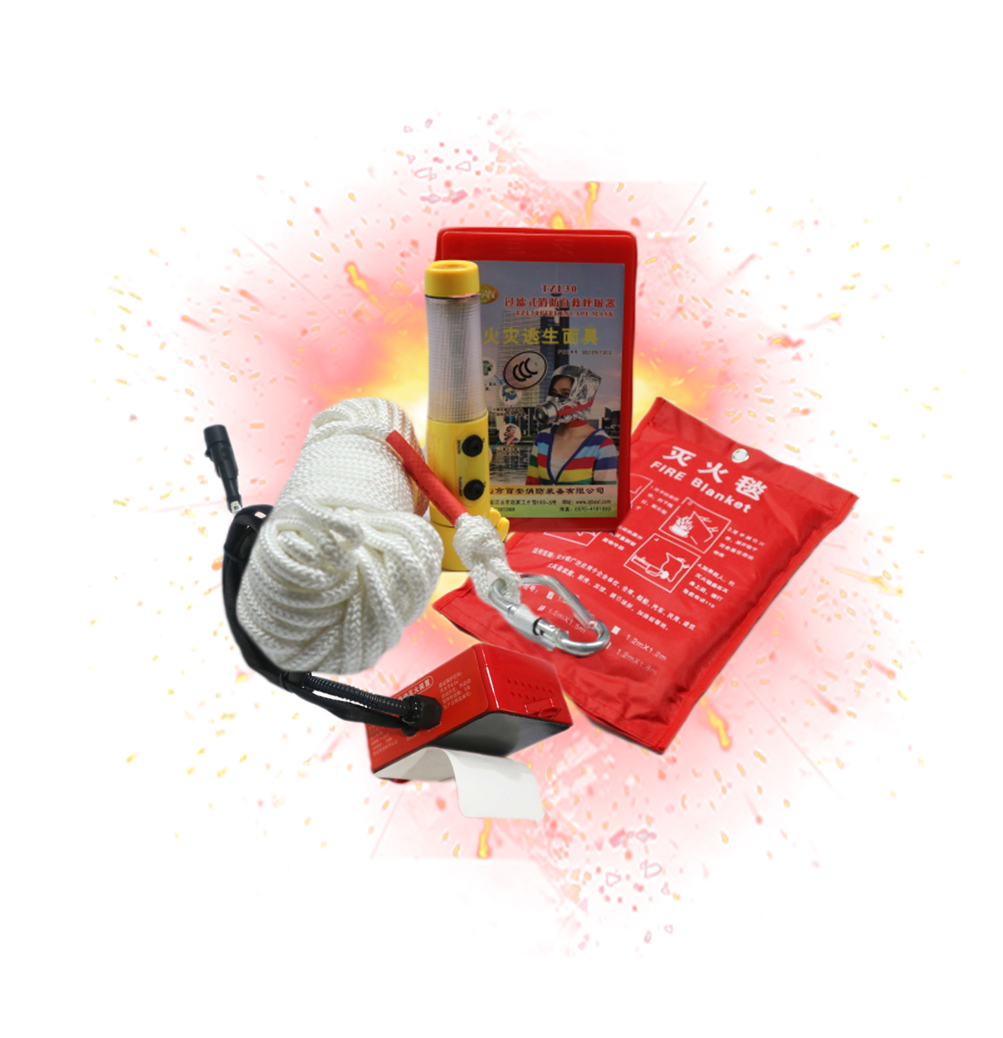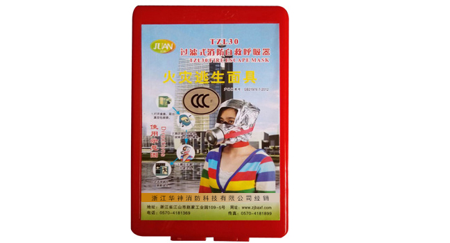 配備于賓館,飯店、辦公樓、商場、學校、幼兒園、醫(yī)院、影劇院、餐廳、公寓樓、住宅樓等場所,為突發(fā)火災時的逃生裝備。頭罩是由阻燃隔熱材料制成,眼窗為弧成結構視野更廣闊,口鼻罩曲面與顏面部吻合嚴密,漏氣系數(shù)小。頭罩上使用了特殊的反光材料,增強了火場的識別能力。濾毒罐可有效地防護由于各種材料燃燒而產(chǎn)生的有毒害氣體和煙氣,特別對CO(一氧化碳)和HCN(氰氫酸)及煙氯有很好的防護功能。