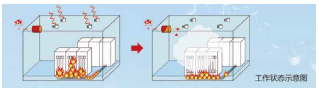 經(jīng)過0-30s(可調(diào)延時),使白狐取內(nèi)熱氣溶膠滅火裝置啟動