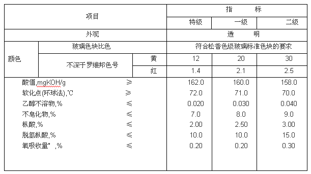 氫化松香為無定形透明固體樹脂,含有二氫樅酸75%,相對密度1.045。軟化點70~72℃。折射率1.5270。黏度(60%甲苯溶液)3.6mPa·S。酸值162mgKOH/g。皂化值167mgKOH/g。閃點(開杯)203℃。溶于乙醇、丙酮、二氯乙烷、二硫化碳、甲苯、松節(jié)油、石油醚、溶劑汽油和植物油中??寡趸阅芎?,脆性小,熱穩(wěn)定性高。無毒,LD50 7600mg/kg。