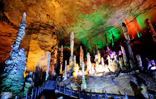黃龍洞是張家界武陵源風景名勝中著名的溶洞景點,因享有“世界溶洞奇觀”“世界溶洞全能冠軍”“中國最美旅游溶洞”等頂級榮譽而名震全球?,F(xiàn)已探明洞底總面積10萬平方米;洞體共分四層,洞中有洞、洞中有山、山中有洞、洞中有河。經(jīng)中外地質專家考察認為:黃龍洞規(guī)模之大、內容之全、景色之美,包含了溶洞學的所有內容。黃龍洞以其龐大的立體結構洞穴空間、豐富的溶洞景觀、水陸兼?zhèn)涞挠斡[觀光線路獨步天下,內中有天然空調;洞中燈火闌珊、石筍林立,是名副其實的“地下魔宮”,洞中還有投保一億元的石筍定海神針著名景點。