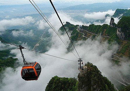 體驗世界最長的單線循環(huán)脫掛抱索器車廂式索道:天門山索道