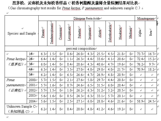 思茅松、云南松及未知松香樣品氣相色譜檢測(cè)結(jié)果對(duì)比