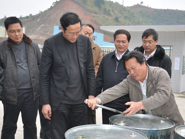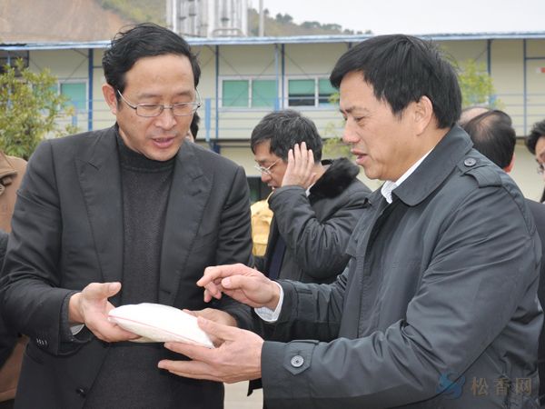 陳章良副主席(左二)在松樺公司了解生產(chǎn)情況