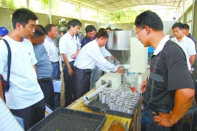 三明市三元區(qū)巖前林業(yè)站技術(shù)人員向林農(nóng)傳授輕基質(zhì)營養(yǎng)土生產(chǎn)技術(shù)