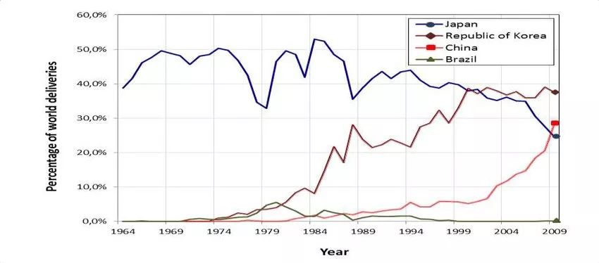 再舉一個(gè)例子。1970年代,巴西是僅次于日本的世界第2大造船國(guó),鼎盛時(shí)一年造船產(chǎn)量達(dá)72.9萬(wàn)噸,提供的直接就業(yè)崗位近4萬(wàn)個(gè),還帶動(dòng)10萬(wàn)個(gè)間接就業(yè)。