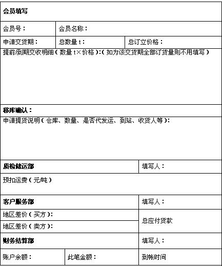 交收申請(qǐng)表:
