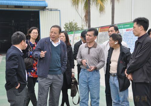 廣西區(qū)國資委黨委副書記、副主任韋剛強(qiáng)(中)到公司調(diào)研,右為公司總經(jīng)理郭樹泉