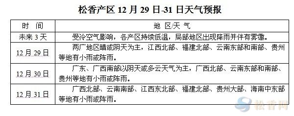 松香產(chǎn)區(qū)12月29日-31日天氣預(yù)報(bào)