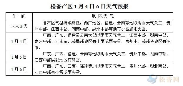 松香產(chǎn)區(qū)1月4日-6日天氣預(yù)報(bào)