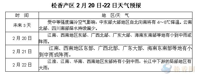 松香產(chǎn)區(qū)2月20日-22日天氣預(yù)報(bào)