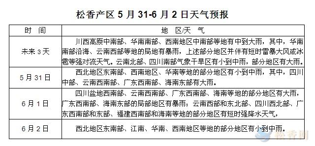 華訊松香網(wǎng)提醒:未來(lái)三天華南南部、西南中南部等地中到大雨,其中華南沿海、滇西等局地暴雨。持續(xù)降雨將對(duì)部分產(chǎn)區(qū)松脂采割及運(yùn)輸?shù)裙ぷ髟斐梢欢ㄓ绊?。其中兩廣、福建等沿海地區(qū)新松脂下山較為緩慢,預(yù)計(jì)短期內(nèi)新脂量將不會(huì)大幅釋放。
