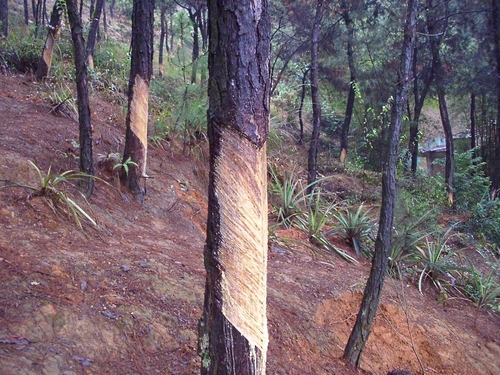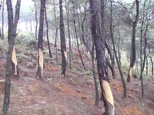 華訊松香網(wǎng)梧州訊 3月8日,梧州市部分山林拉開釆脂序幕,脂農(nóng)上山采脂時間比往年提前-個月,-些山頭的松樹早已被承包,毎棵承包價16元左右,脂農(nóng)將毎棵樹的采脂割面淸理好,等待晴好天氣的到來。